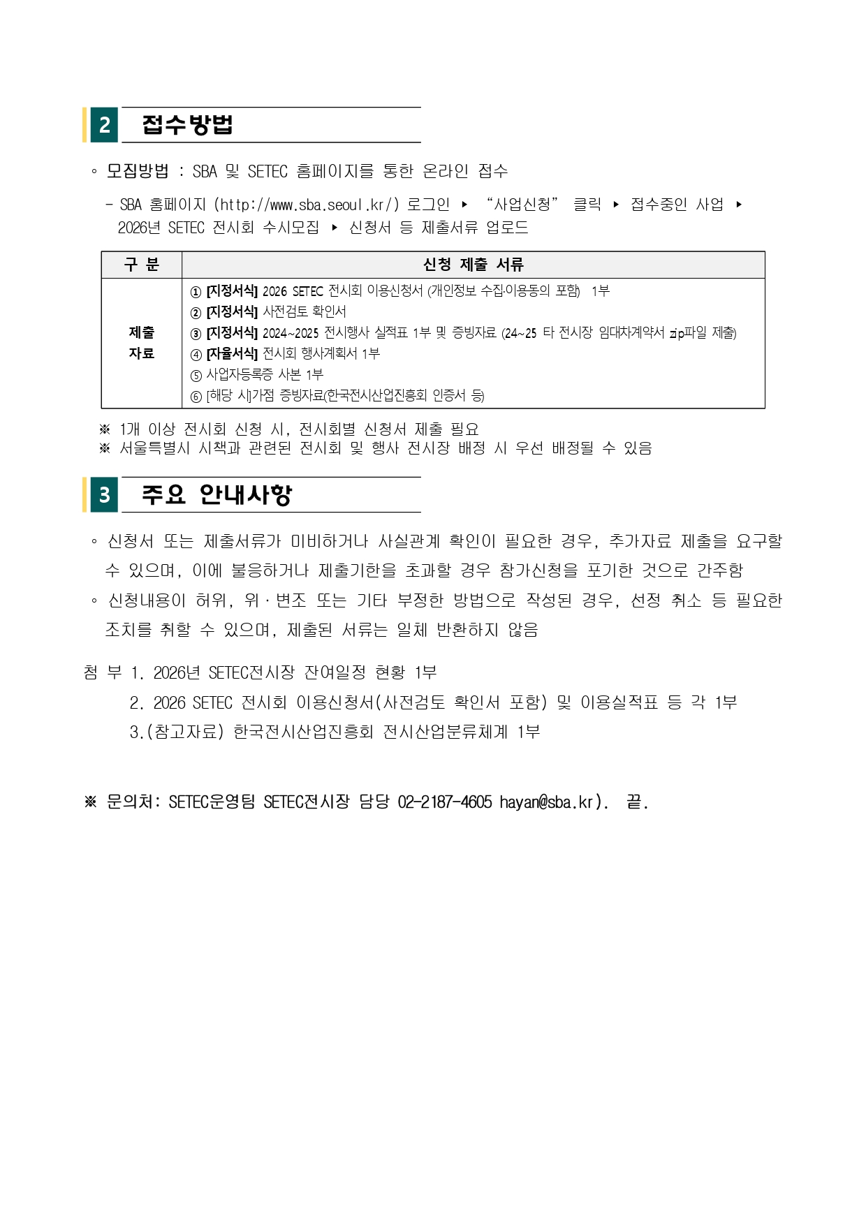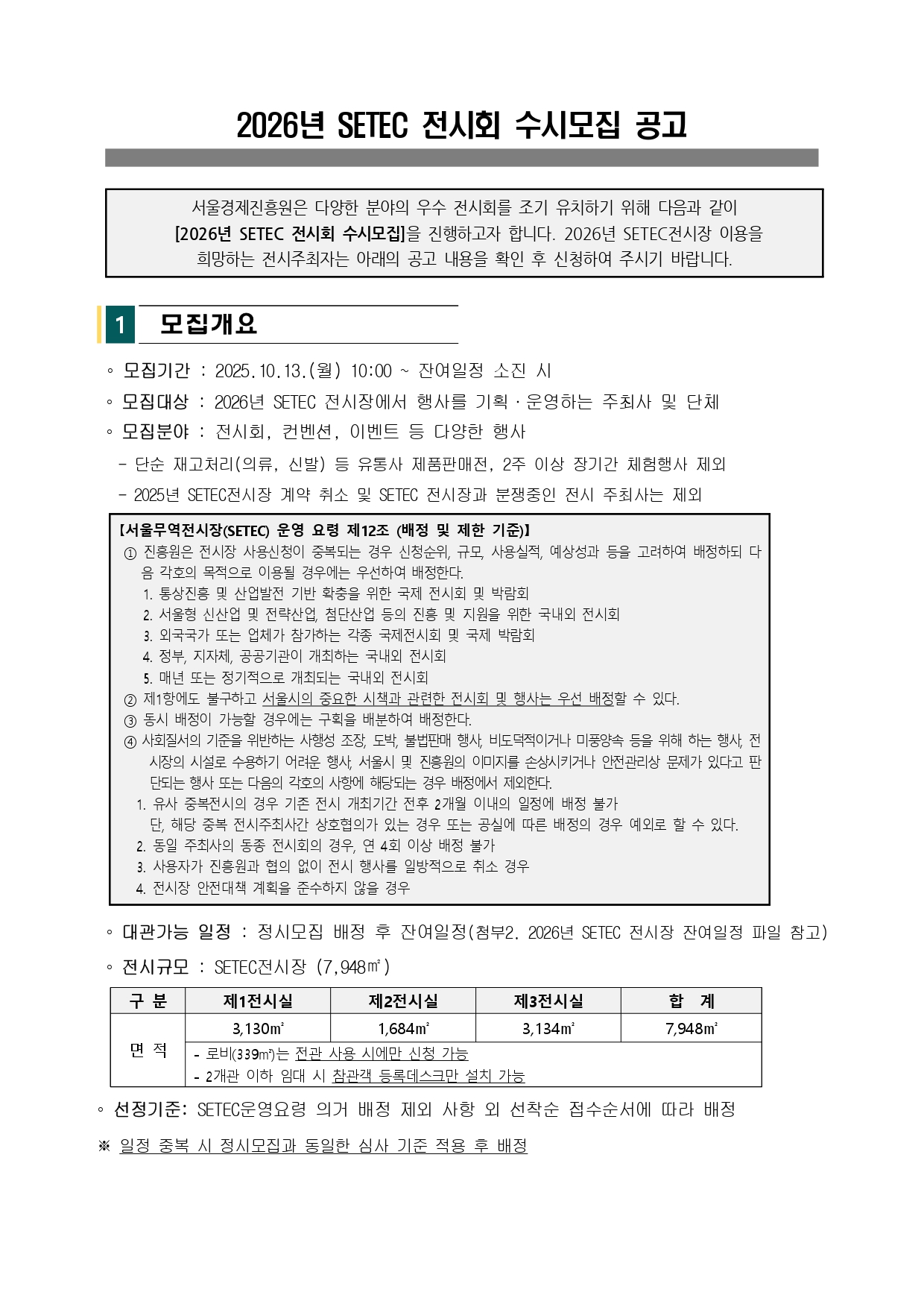 2026년도 SETEC전시장 수시 모집 (~잔여 일정 소진시까지)